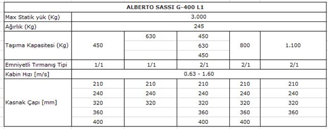 ALBERTO SASSI G-400 L1 Maximum static load capacity is 3000 kgs